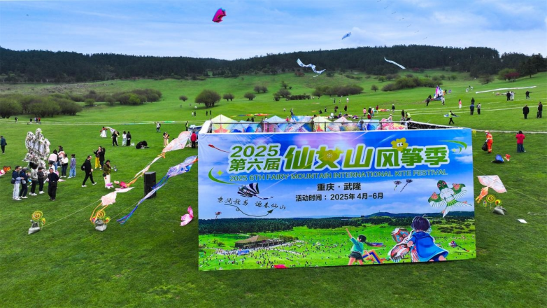 開幕儀式上,“DIY武隆愿景風(fēng)箏”環(huán)節(jié)吸引眾多嘉賓和游客們的參與,大家拿起畫筆,在一只大型風(fēng)箏上寫下自己的期望與祝福。隨著重慶市武隆區(qū)人民政府副區(qū)長(zhǎng)何圣春宣布“2025第六屆仙女山風(fēng)箏季開幕”后,形態(tài)各異的風(fēng)箏乘風(fēng)而起,同時(shí),DIY愿景風(fēng)箏化身“天空郵局”的信使,載著千萬份祝福飛向云端。