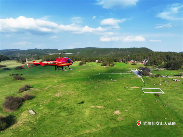 萬畝草場正值青綠巔峰,騎馬、放風(fēng)箏、露營、打卡網(wǎng)紅小火車,躺在草坪看云卷云舒,直升機(jī)低空掠過的轟鳴聲里,藏著重慶人的瑞士平替浪漫。