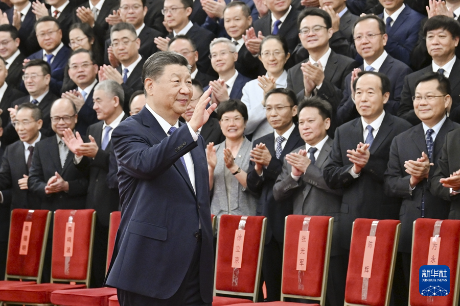 9月23日,黨和國家領(lǐng)導(dǎo)人習(xí)近平、李強、趙樂際、王滬寧、蔡奇、丁薛祥、李希等在人民大會堂接見探月工程嫦娥六號任務(wù)參研參試人員代表并參觀月球樣品和探月工程成果展覽。這是習(xí)近平等接見探月工程嫦娥六號任務(wù)參研參試人員代表。新華社記者 謝環(huán)馳 攝