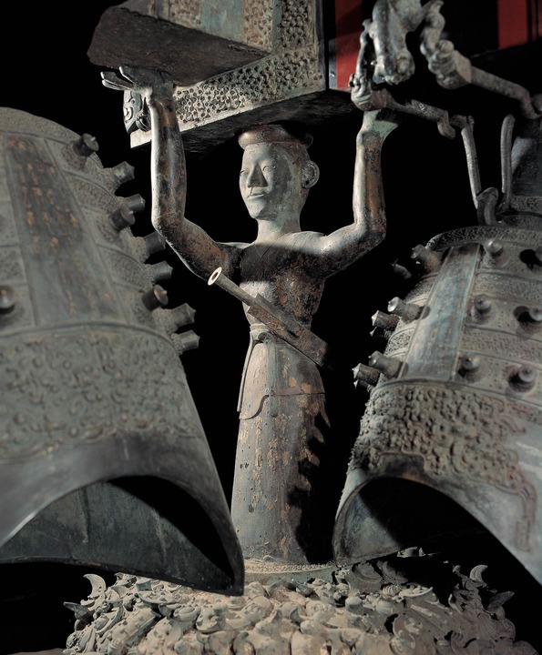 曾侯乙編鐘上的青銅武士。湖北省博物館供圖。