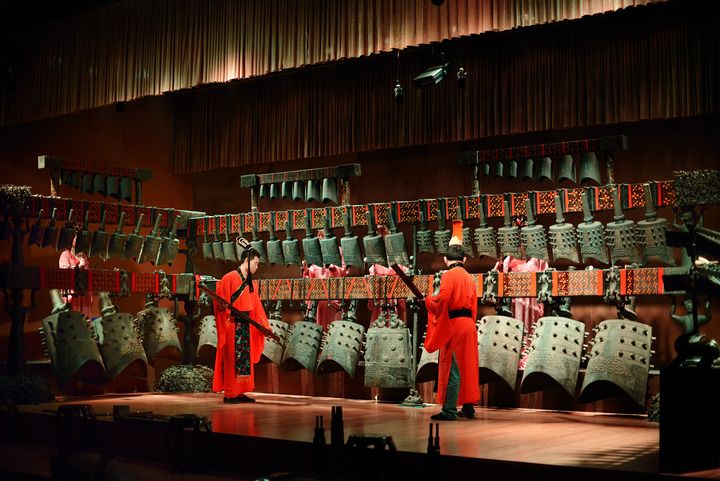 隨州博物館內(nèi)的編鐘樂舞演奏。在湖北省博物館南館東側(cè)的“曾侯乙”展廳里,三層八組65件青銅編鐘原件至今僅演出過3次,每一次都轟動(dòng)中外。李文軍攝