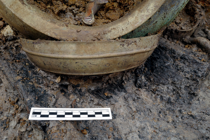 棗樹林墓地出土的羋加缶及其銘文“楚王媵隨仲羋加”。湖北省文物考古研究院供圖