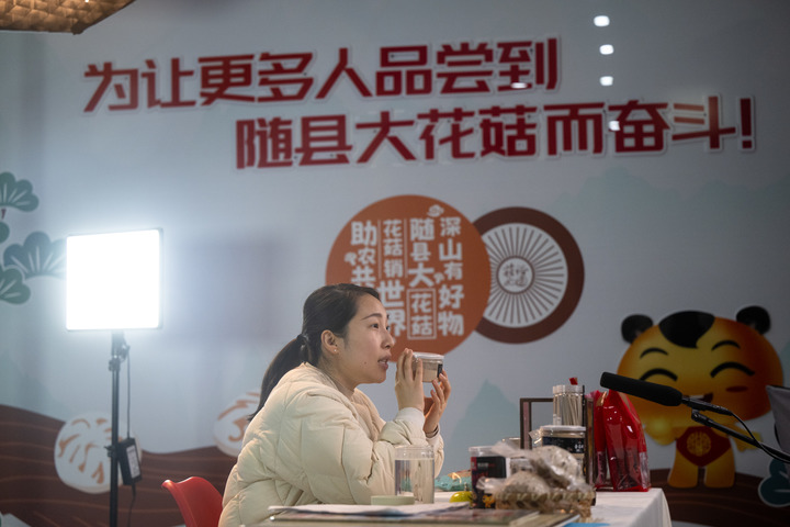 隨縣大花菇電商直播現(xiàn)場(chǎng)。新華社記者 肖藝九攝