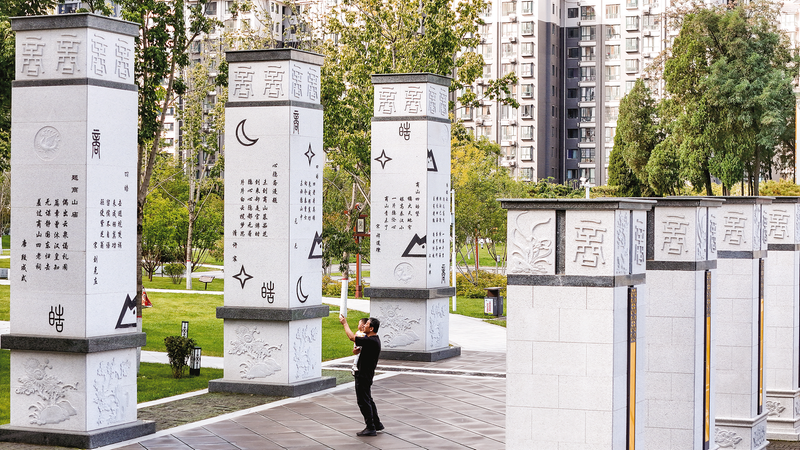 商洛市中心城區(qū)四皓街東北側的四皓公園里,四皓雕塑、墻、柱等景觀及其鐫刻在上面的一首首與四皓相關的古今詩詞,讓這處人文景觀顯得更加厚重。