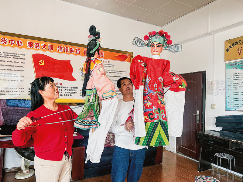 “木偶戲不好學(xué),一個(gè)木偶六七斤重,舉一會胳膊酸疼,頭也要仰著,等排練結(jié)束了,手顫抖得都握不到一起?!眲⑹鐞壅f,木偶藝人往往還要邊操縱著木偶,邊唱戲詞,要深入領(lǐng)會劇中人物的內(nèi)心活動,真正是集唱、念、做、打和奏樂于一身,十分考驗(yàn)人的戲曲功底。