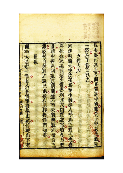 《聊齋志異》中有一篇《五羖大夫》,講述山西河津人暢體元為生員時,夢到有人稱他為“五羖大夫”,自以為是吉兆。后來遭遇流寇之亂,他被擄后剝?nèi)ヒ路P(guān)在黑屋中。時值嚴冬,天寒地凍,他在黑暗中摸索到幾張羊皮裹身,得以免于凍死。天亮一看,正好是五張羊皮。他不禁啞然失笑,認為是神明與自己開了一個玩笑。后來他以貢生身份被授陜西洛南知縣一職。