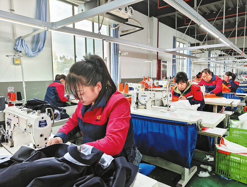十月二十七日,務(wù)工群眾在洛南縣古城鎮(zhèn)移民搬遷小區(qū)附近的陜西金翼服裝有限責任公司洛南分公司務(wù)工。近年來,洛南縣通過招引扶持,把社區(qū)工廠建在移民安置點附近,吸納移民搬遷小區(qū)及周邊剩余勞動力在家門口就業(yè),實現(xiàn)群眾顧家增收兩不誤。(本報通訊員 畢波波 攝)